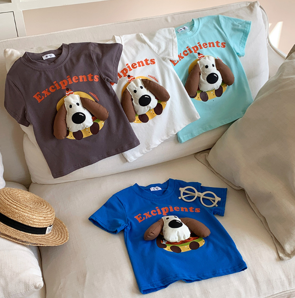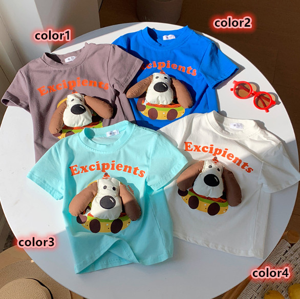 2026夏服新作韓国子供服 Dog柄 半袖Tシャツ