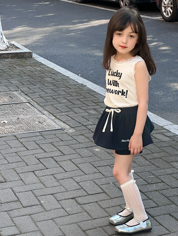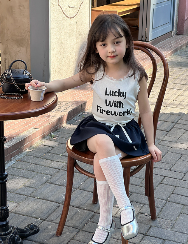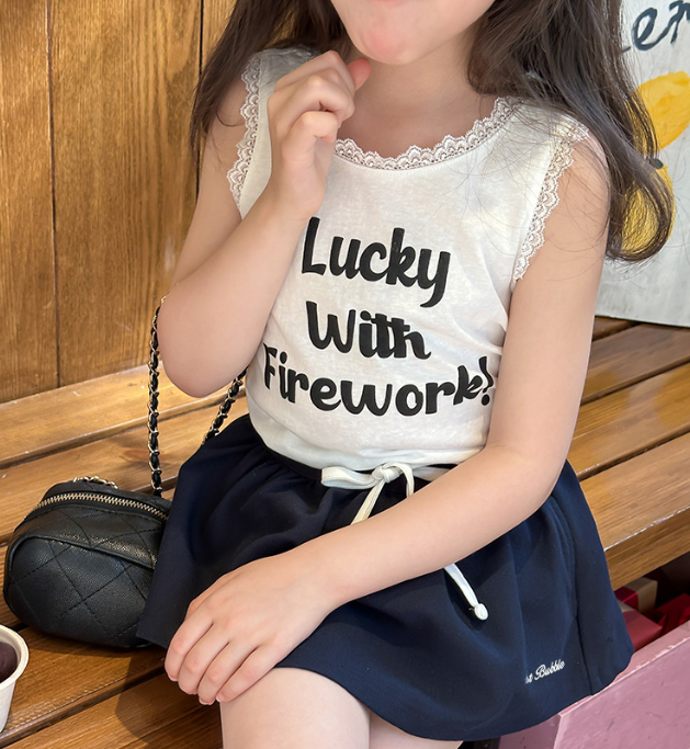 2026夏服新作韓国子供服 英字ロゴ レースタンクトップ