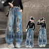 2025秋服新作韓国子供服 ダメージデニムパンツ
