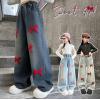 2025秋服新作韓国子供服 刺繍リボン デニムパンツ