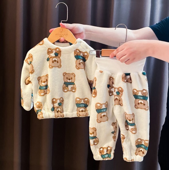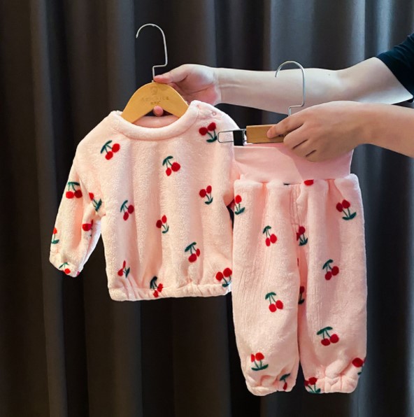 2021冬服新作韓国子供服 女の子 フランネル 上下セット