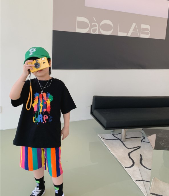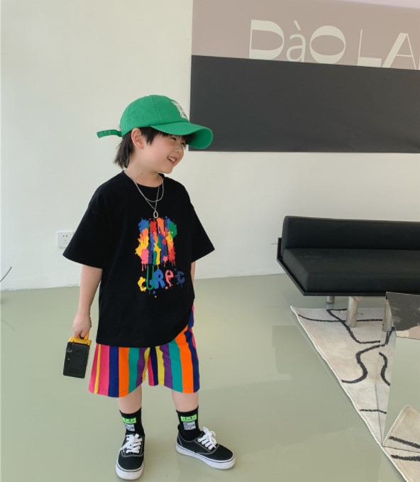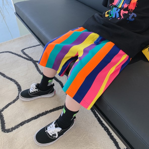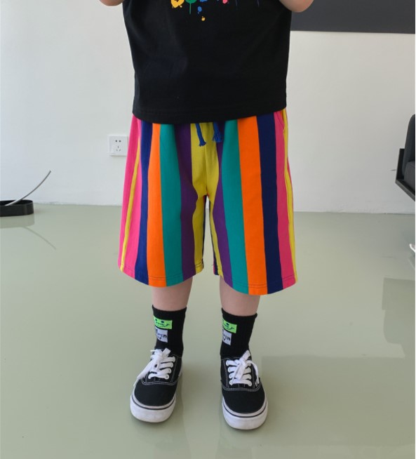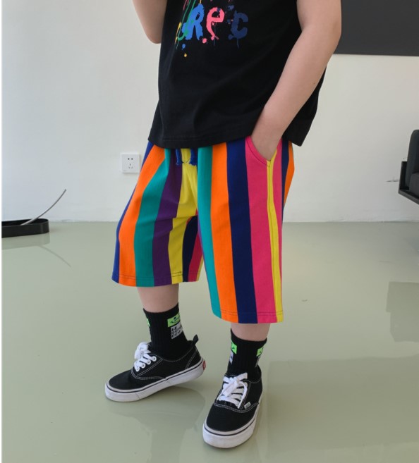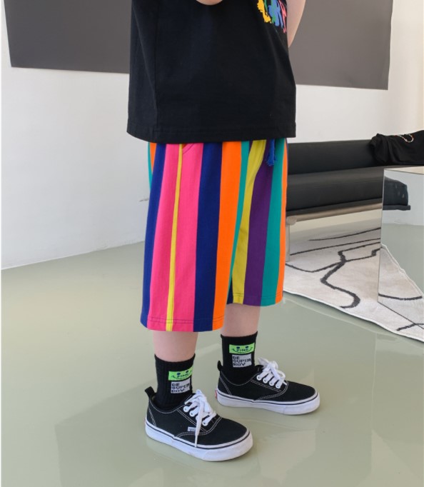 2022夏服新作韓国子供服 男の子 ボーダー 5分丈パンツ