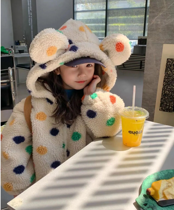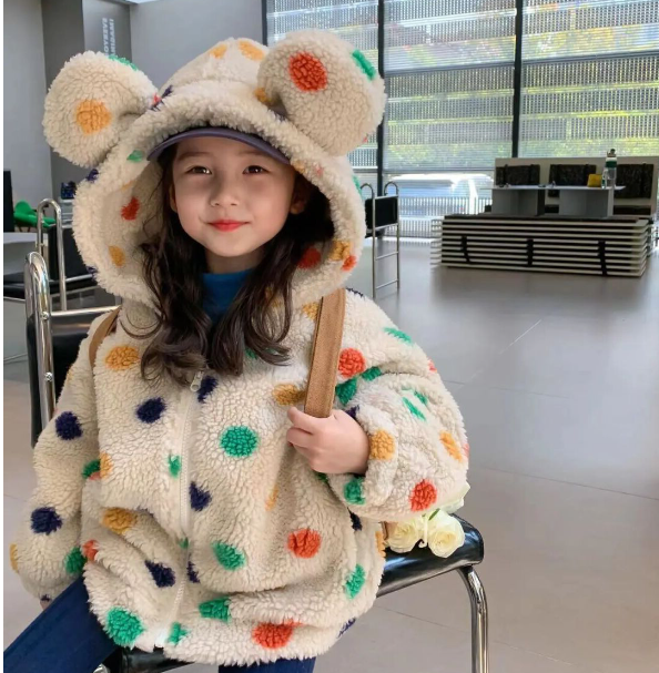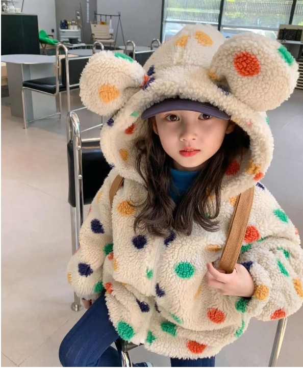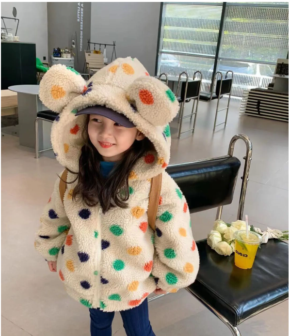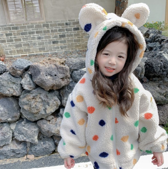 2022冬服新作韓国子供服 女の子 ドット柄 アウター