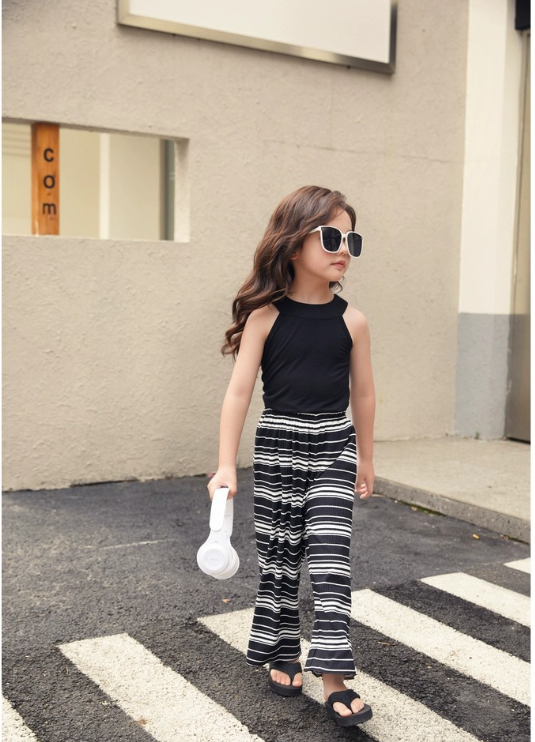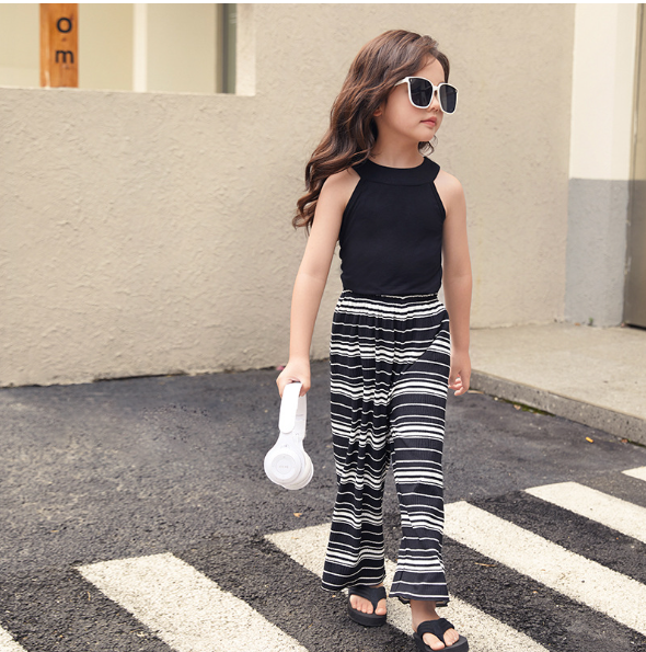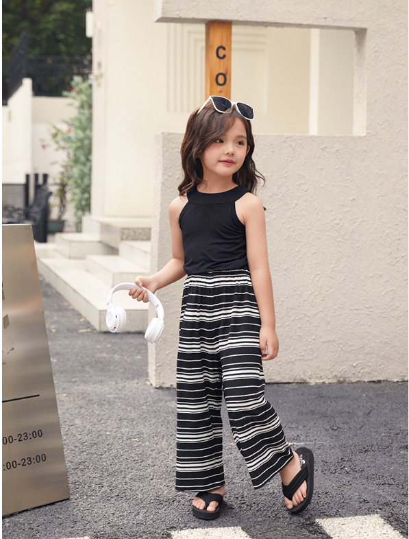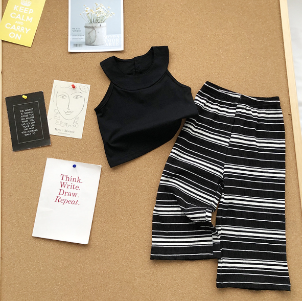 2023夏服新作韓国子供服 女の子 ボーダー 上下セット