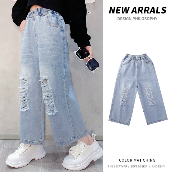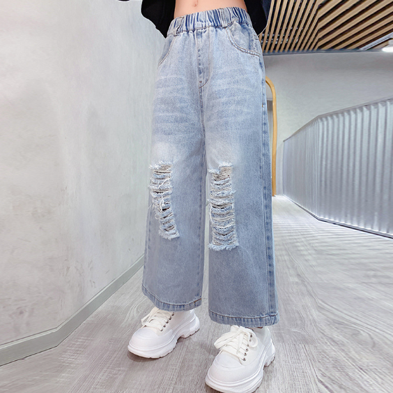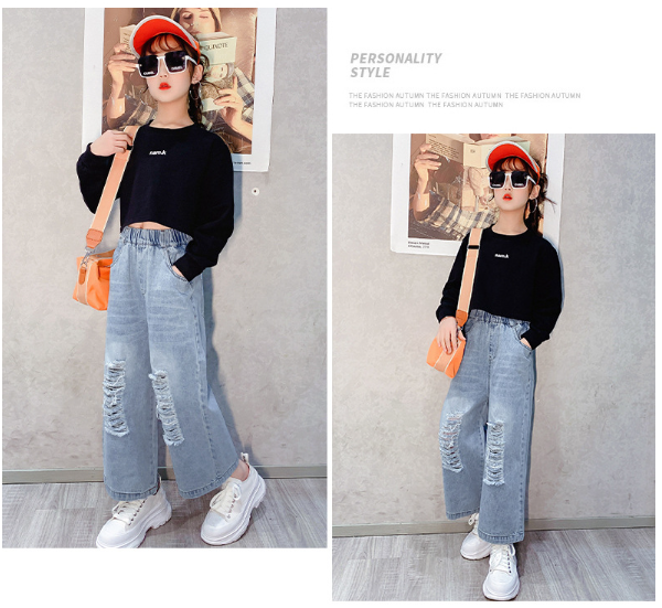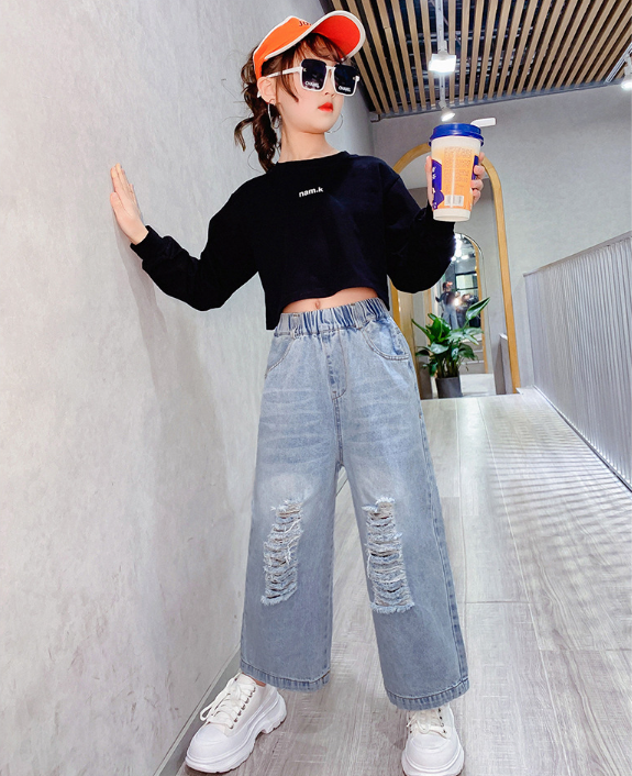 2024春服新作韓国子供服 女の子 ダメージジーンズ