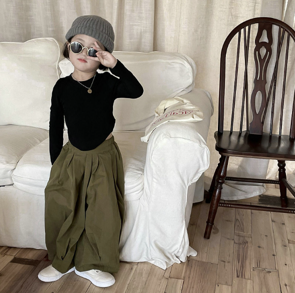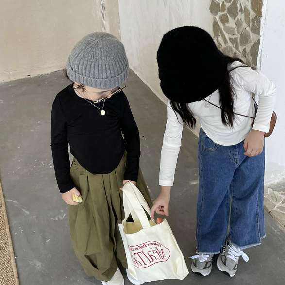 2024春服新作韓国子供服 女の子 無地 長袖tシャツ