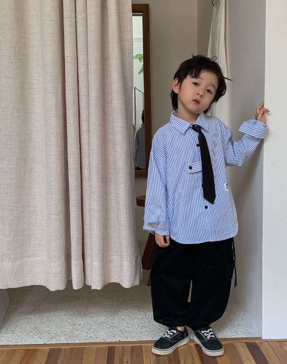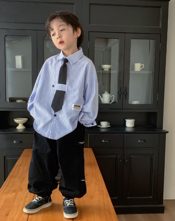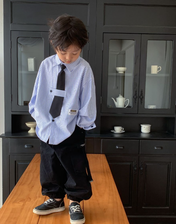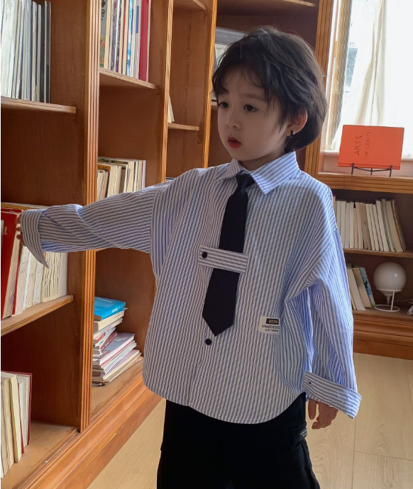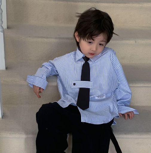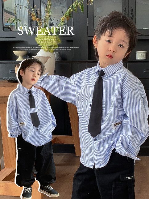 2024春服新作韓国子供服 男の子 ボーダー ブラウス