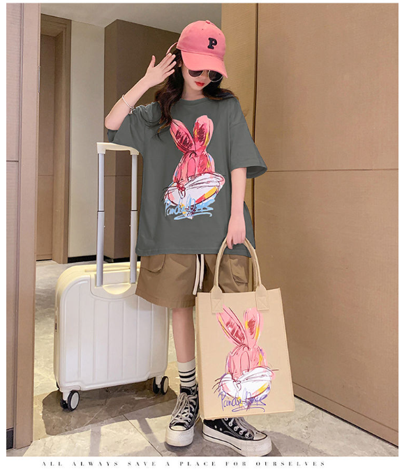 2024夏服新作韓国子供服 ウサギ柄 半袖tシャツ