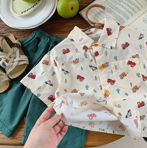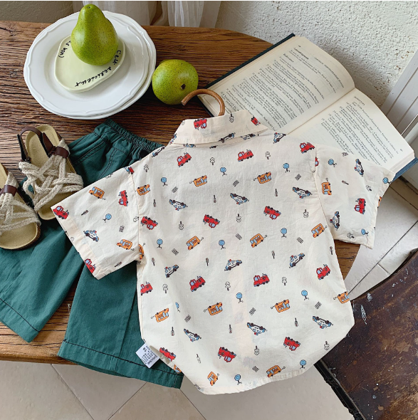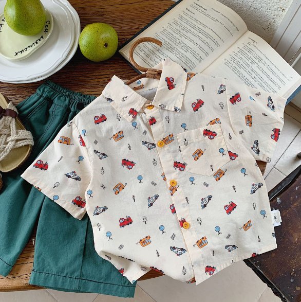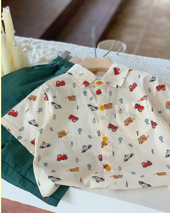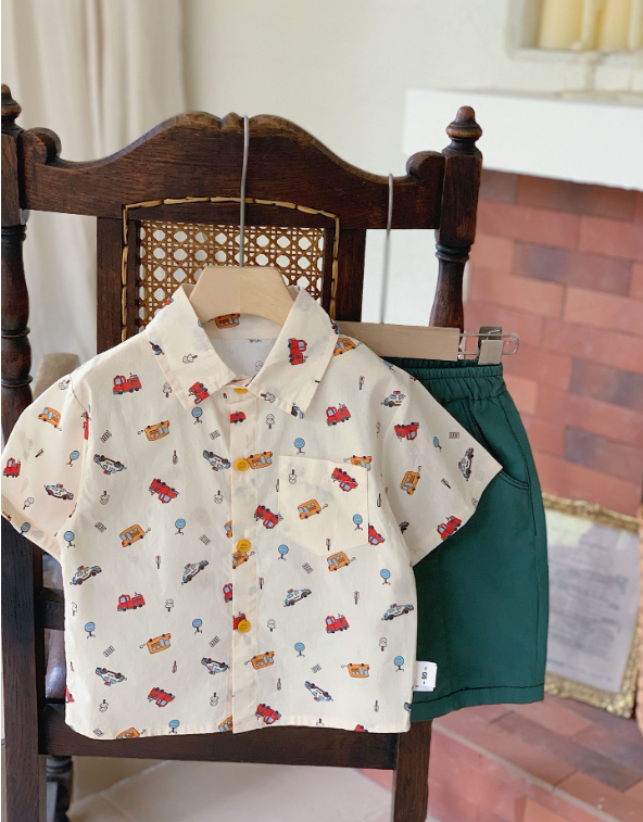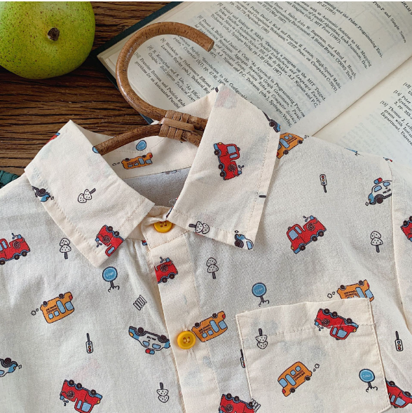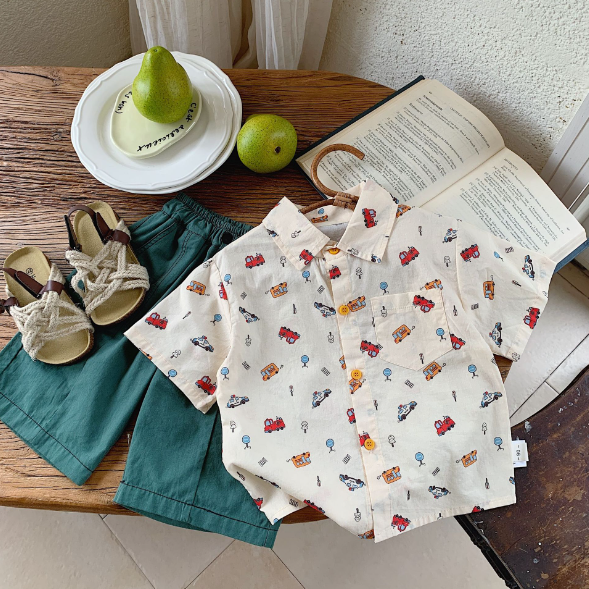 2024夏服新作韓国子供服 男の子 Car柄 ブラウス
