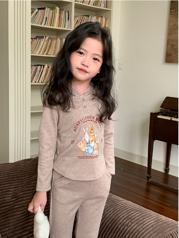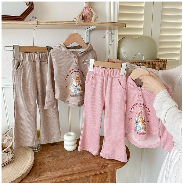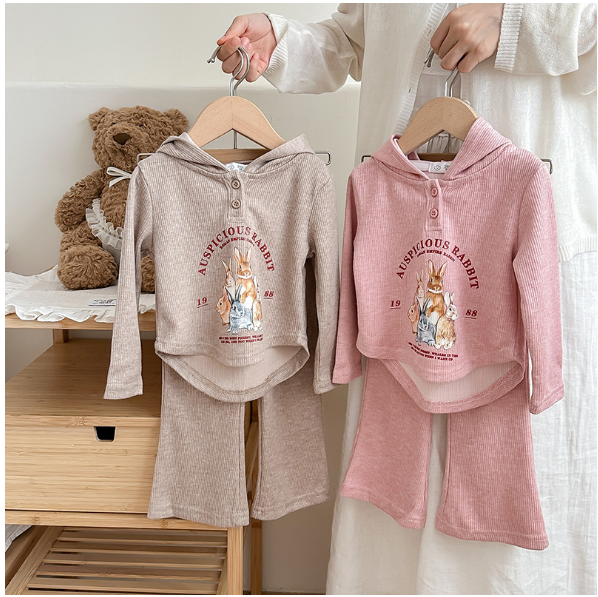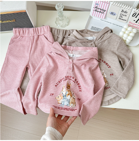 2024秋服新作韓国子供服 女の子 うさぎ柄 上下セット
