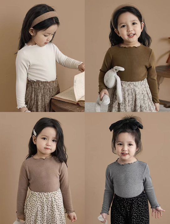 2024秋冬服新作韓国子供服 女の子 4色 長袖tシャツ