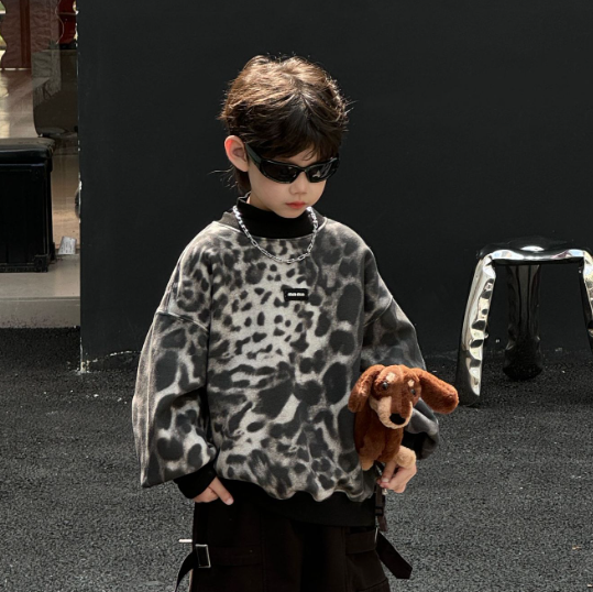 2024冬服新作韓国子供服 豹柄 トレーナー