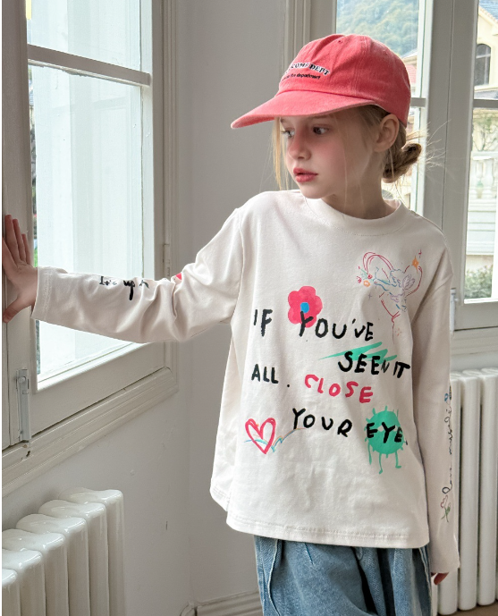 2025春服新作韓国子供服 女の子 英字ロゴトップス