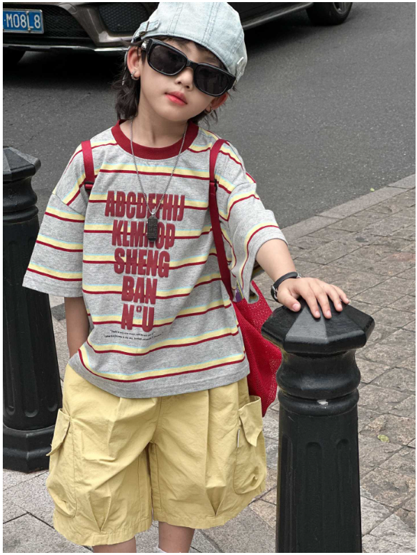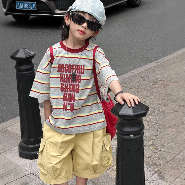 2026夏服新作韓国子供服 ボーダー柄 半袖tシャツ