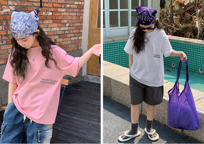 2025夏服新作韓国子供服 英字ロゴ 半袖tシャツ