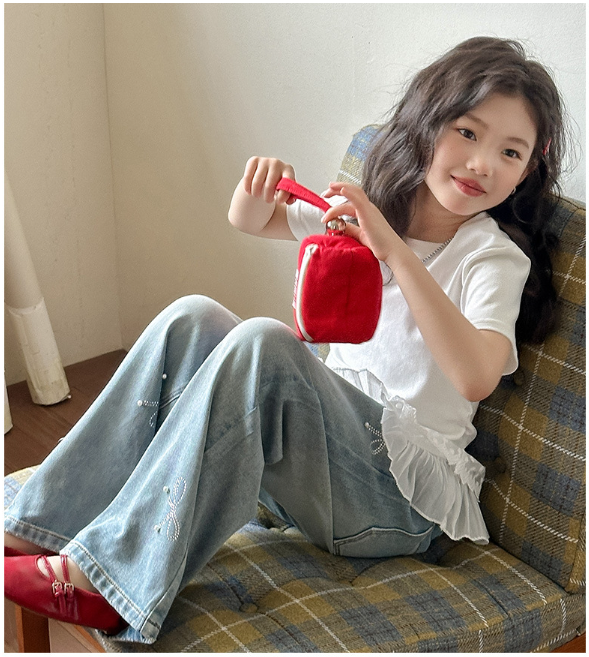 2026春服新作韓国子供服 ハート柄 デニムパンツ