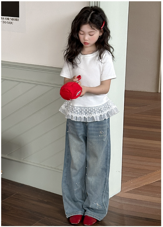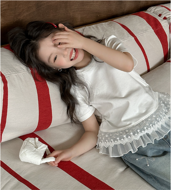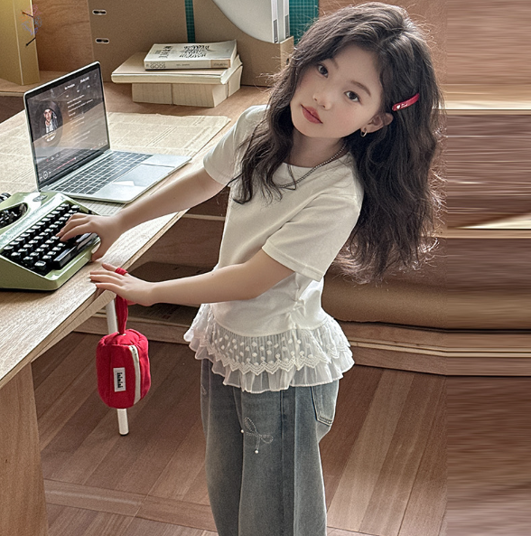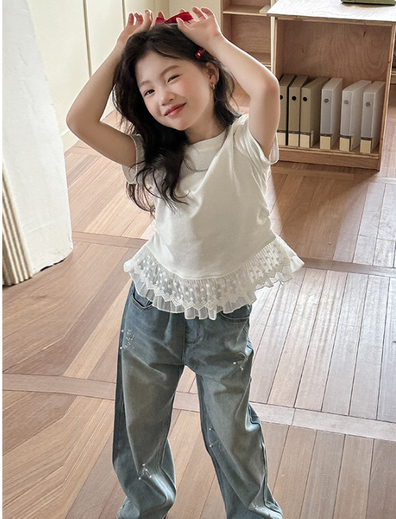 2025夏服新作韓国子供服 レース トップス