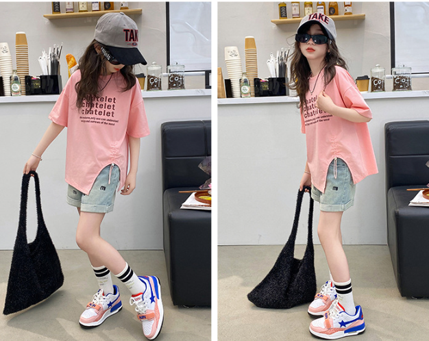 2026夏服新作韓国子供服 女の子 3色半袖tシャツ