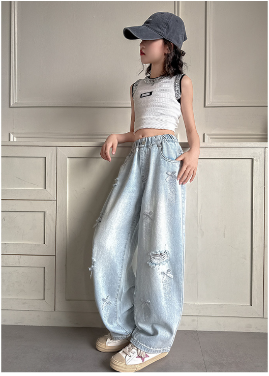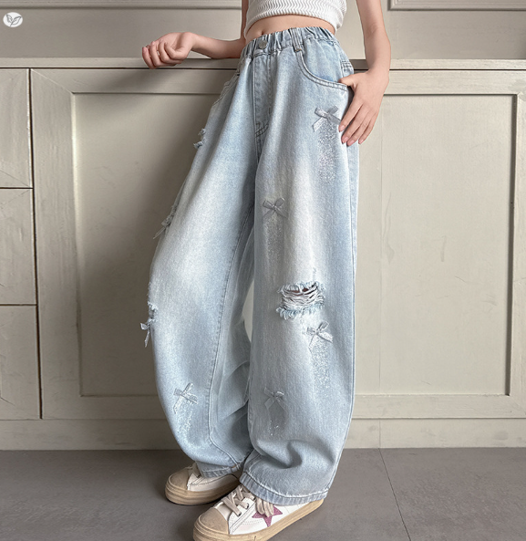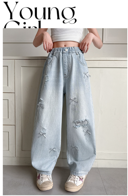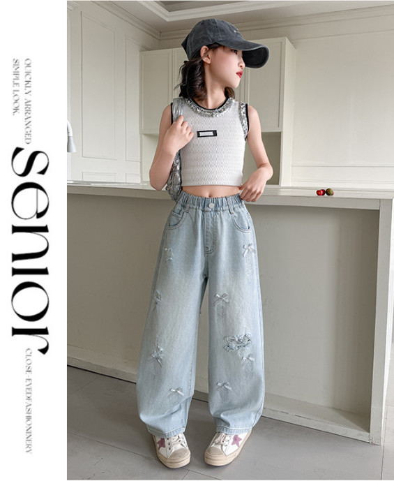 2025夏服新作韓国子供服 リボン付き デニムパンツ