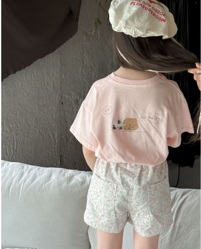 2026夏服新作韓国子供服 Cat柄 半袖Tシャツ