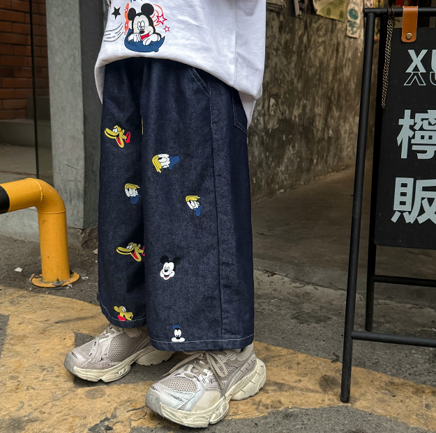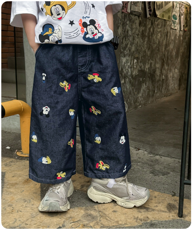2026春服新作韓国子供服 くまちゃん柄 デニムパンツ