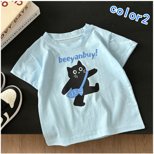 2026夏服新作韓国子供服 Cat柄 半袖Tシャツ