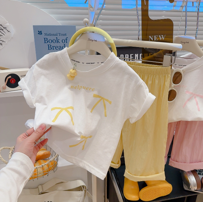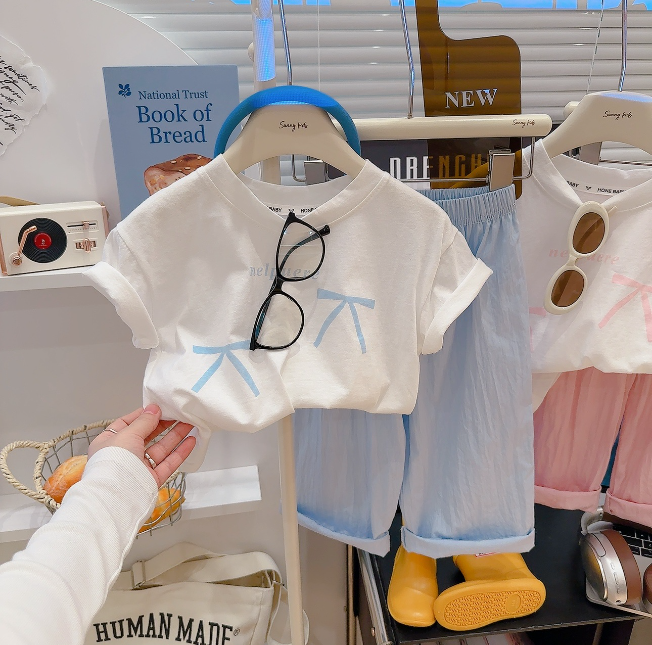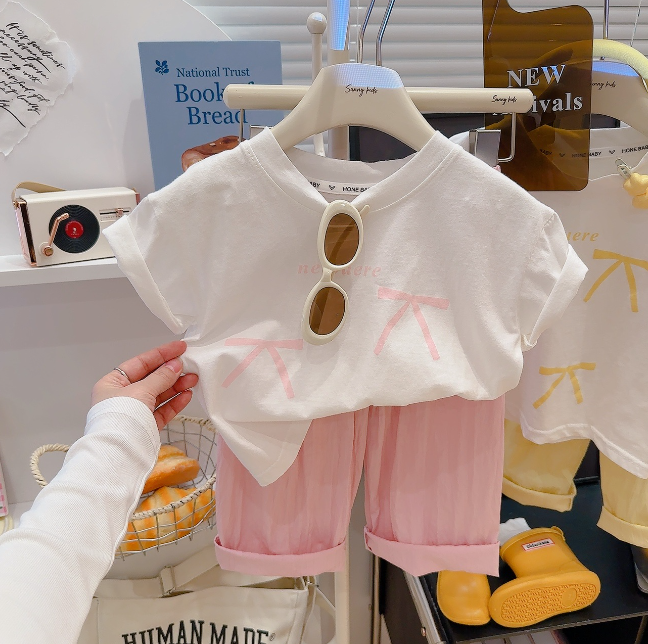 2025夏服新作韓国子供服 リボン柄 上下セット