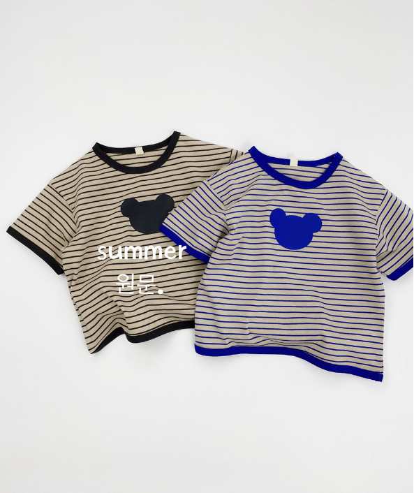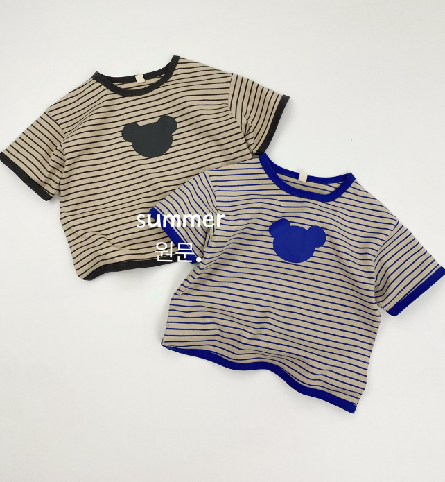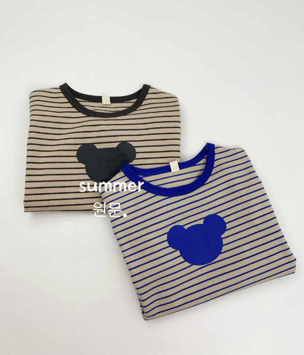 2025夏服新作韓国子供服 ボーダー ミキー柄 半袖tシャツ