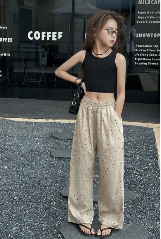 2025夏服新作韓国子供服 ドット柄 3色パンツ
