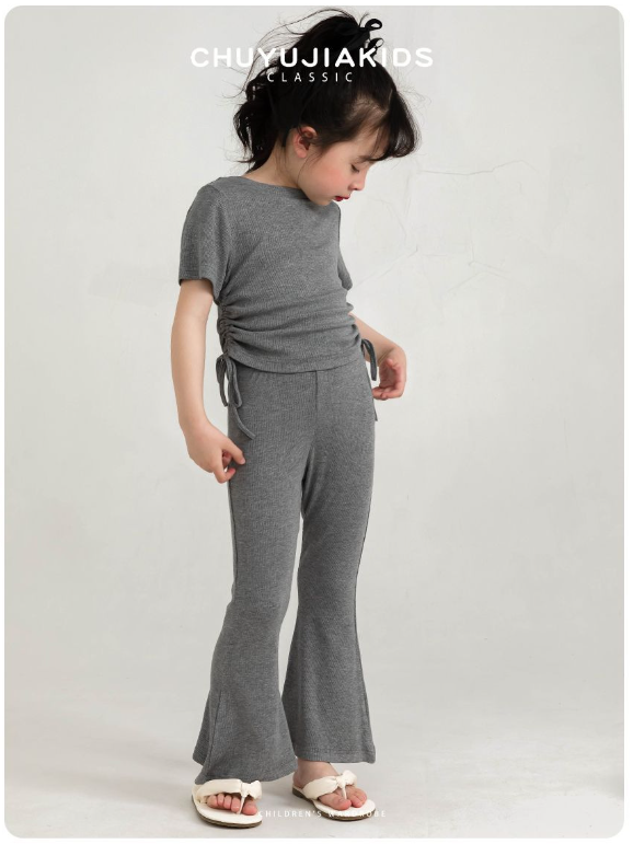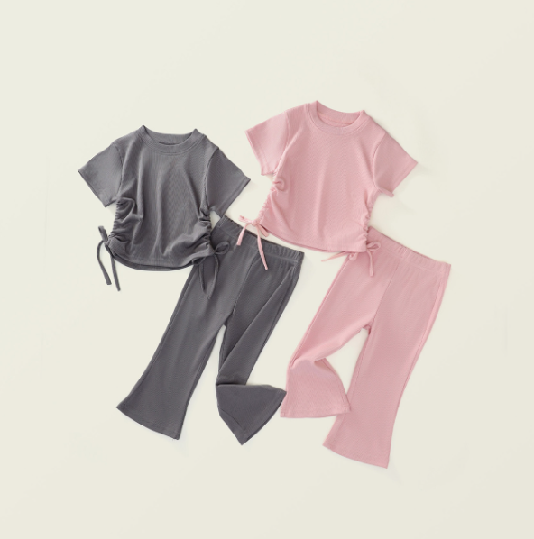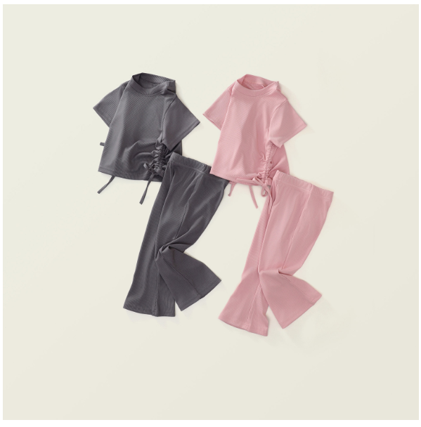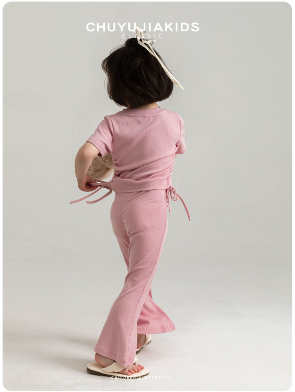 2025夏服新作韓国子供服 女の子 無地 上下セット