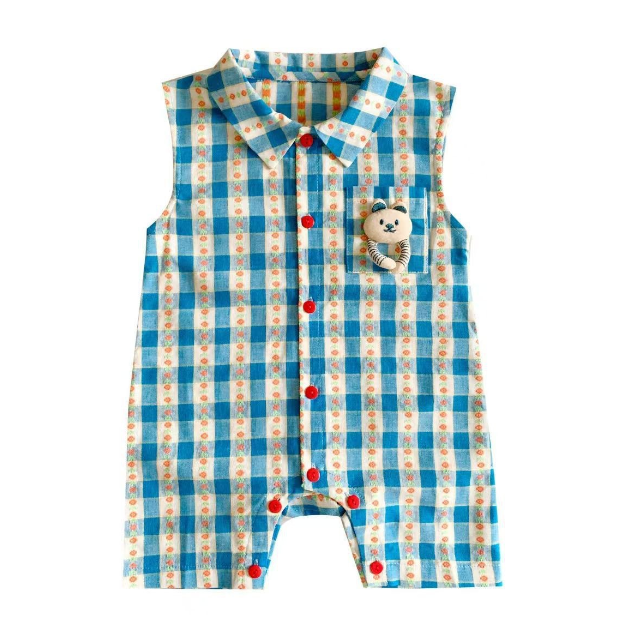 2025夏服新作ベビー服 チェック柄 ロンパース