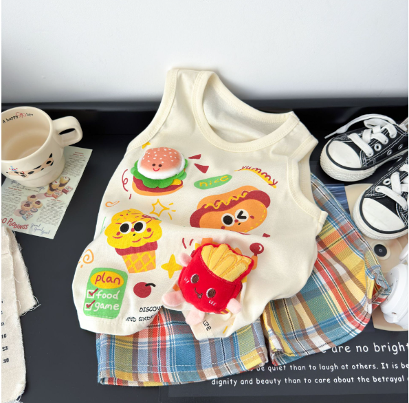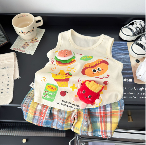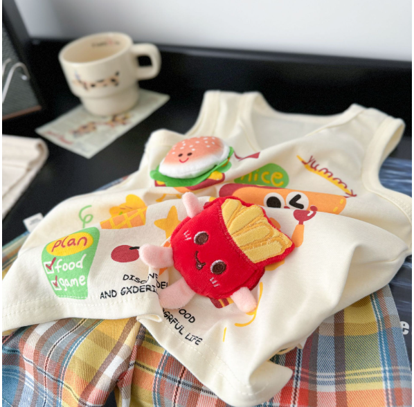 2025夏服新作韓国子供服 ハンバーガー ポテト 上下セット