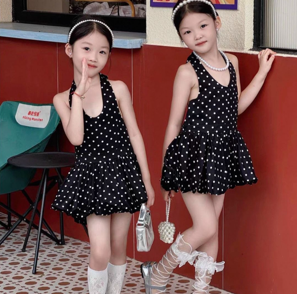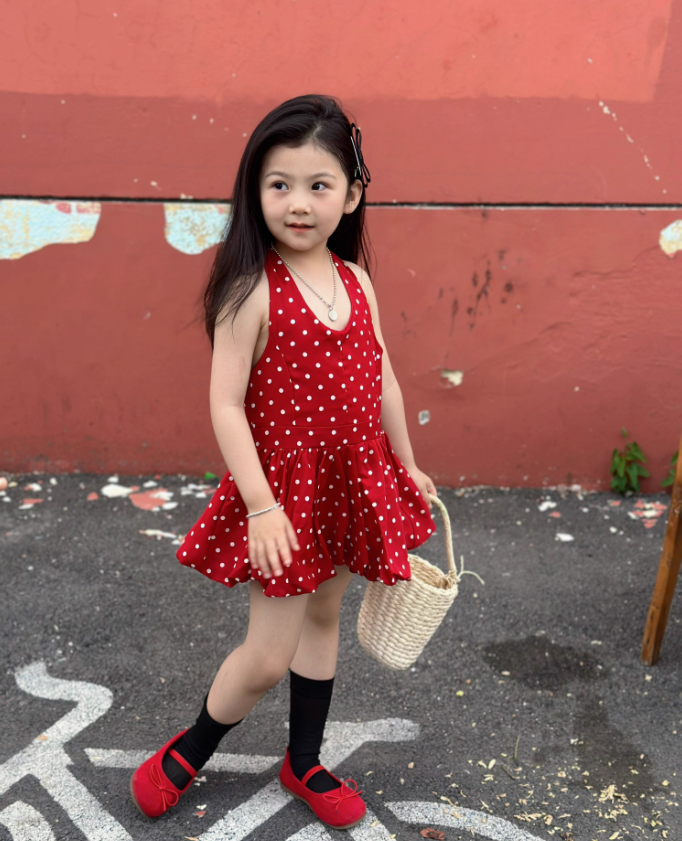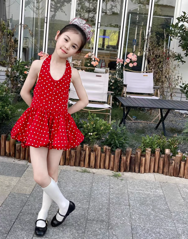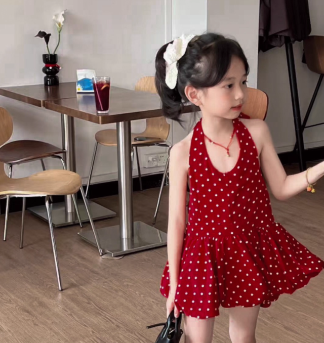2025夏服新作韓国子供服 ドット柄 ワンピース