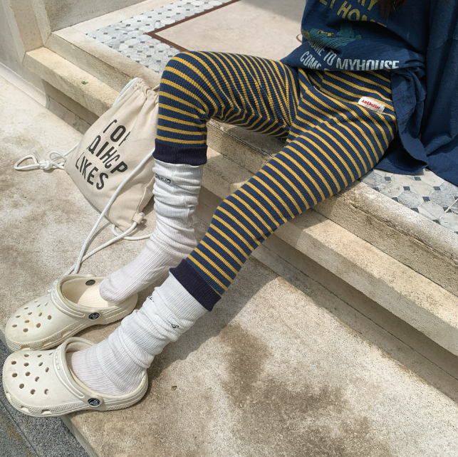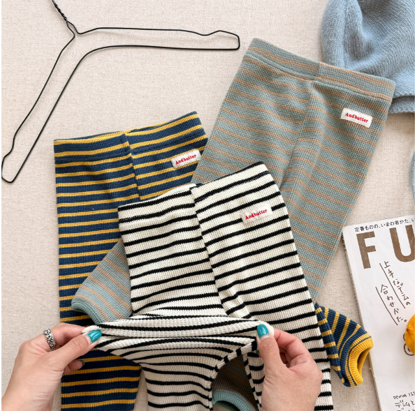 2025秋服新作韓国子供服 女の子 ボーダー レギンス