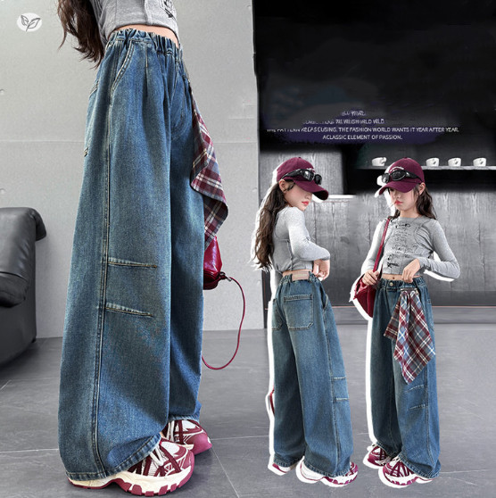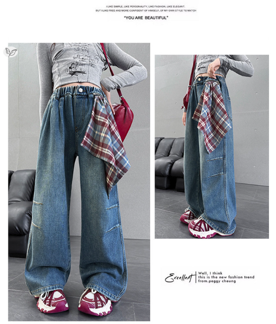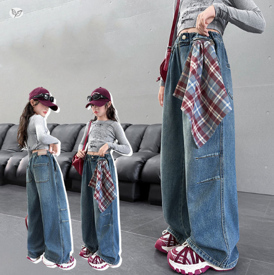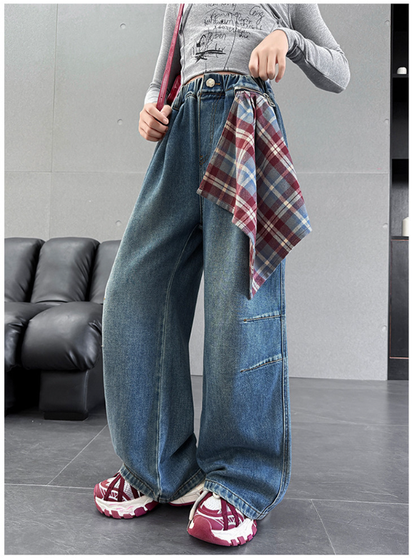 2025秋服新作韓国子供服 スカーフ付き デニムパンツ