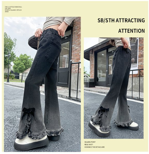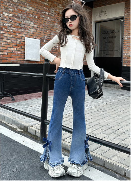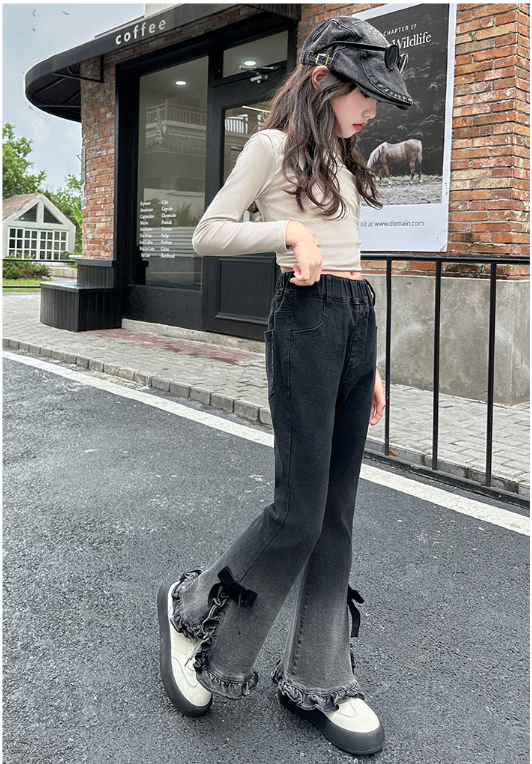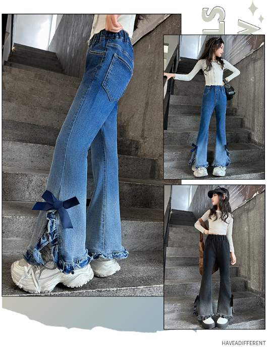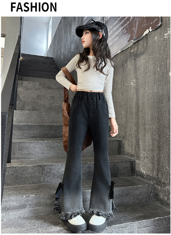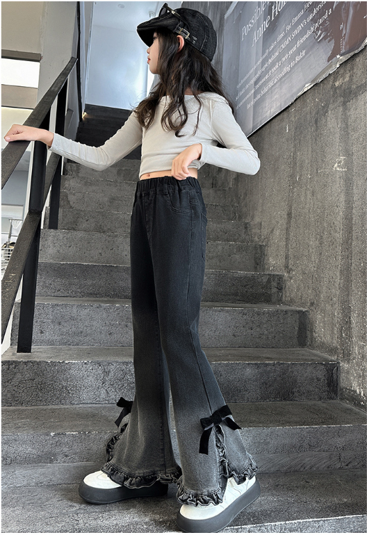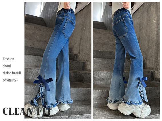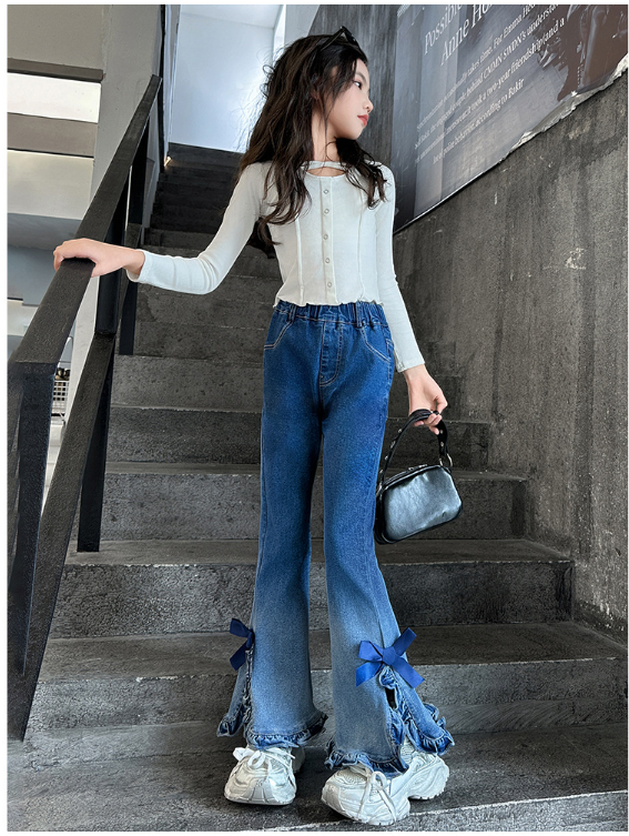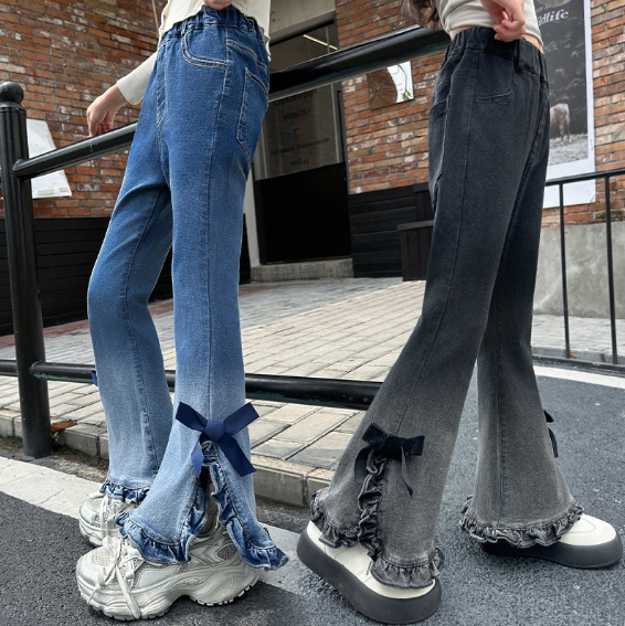 2025秋服新作韓国子供服 リボン付き デニムパンツ