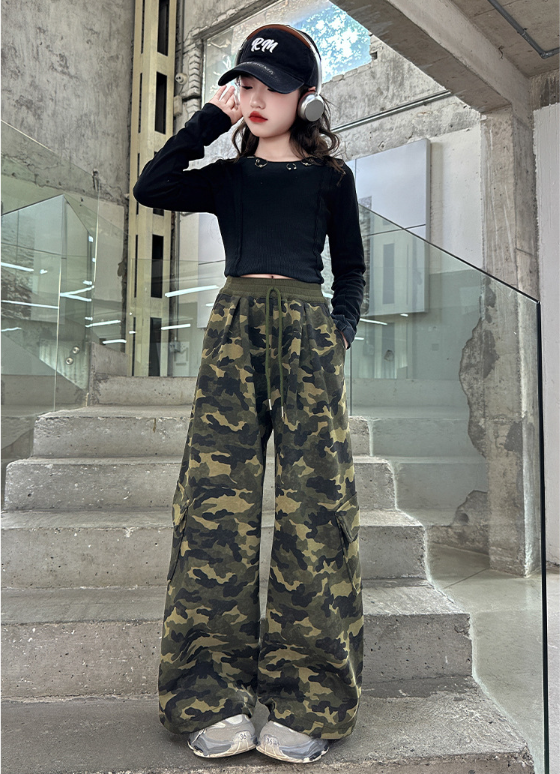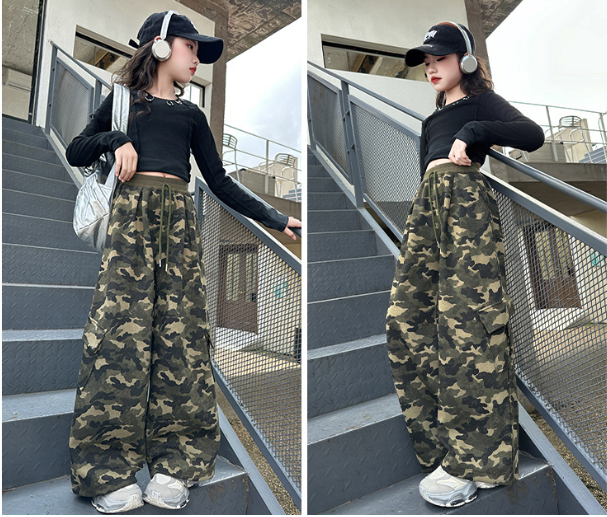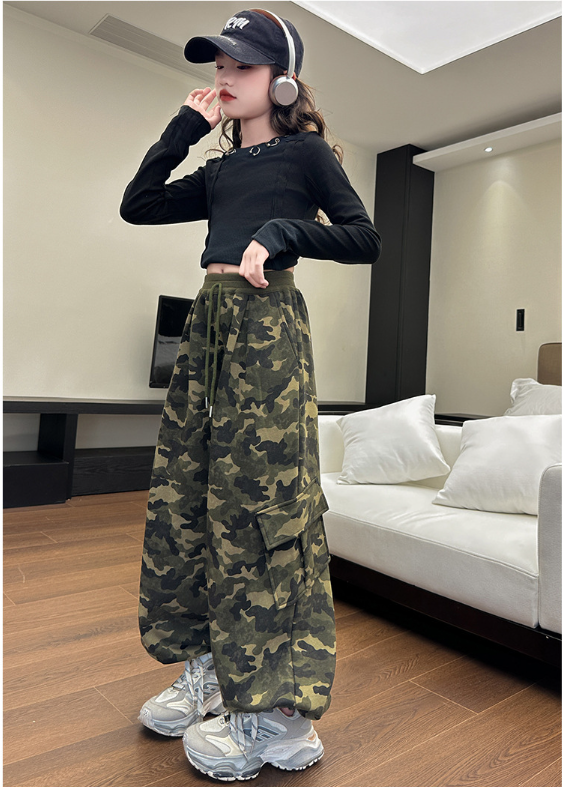 2025秋服新作韓国子供服 女の子 迷彩柄パンツ