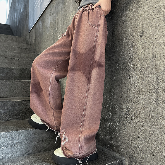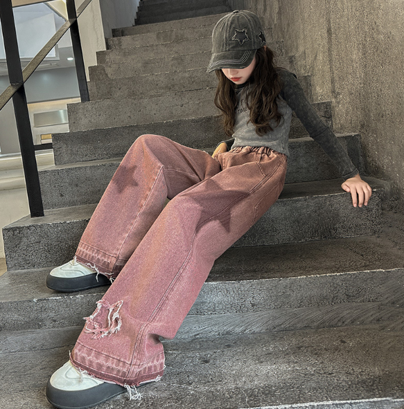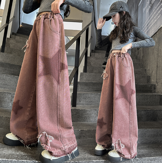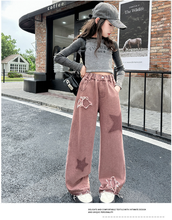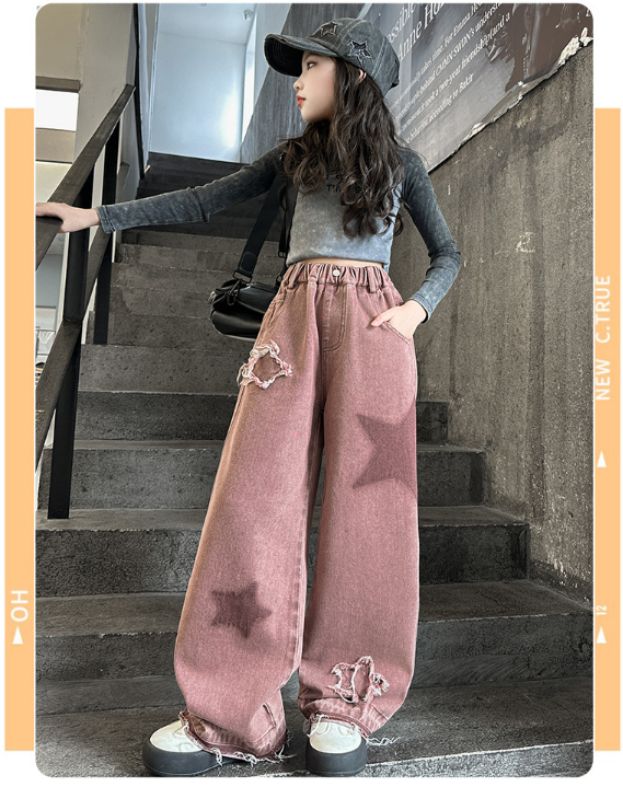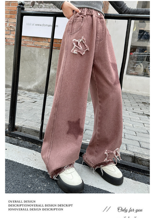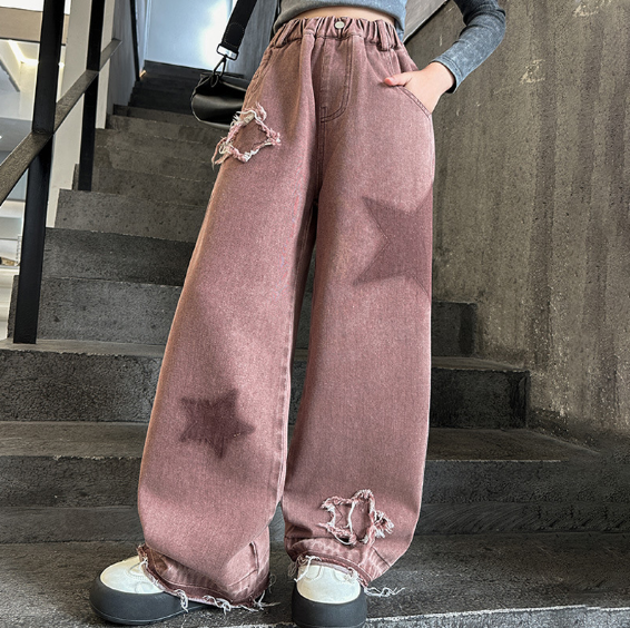 2025秋服新作韓国子供服 星柄 デニムパンツ