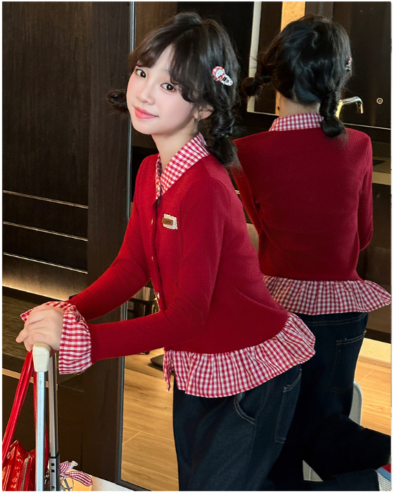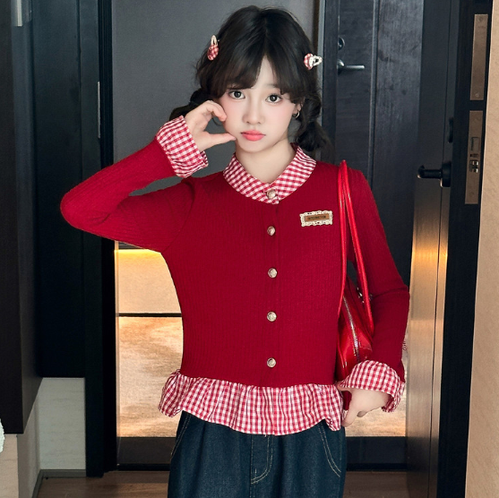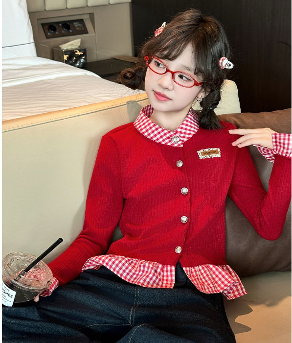 2026春服新作韓国子供服 チェック柄 トップス