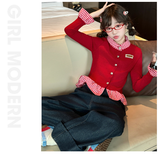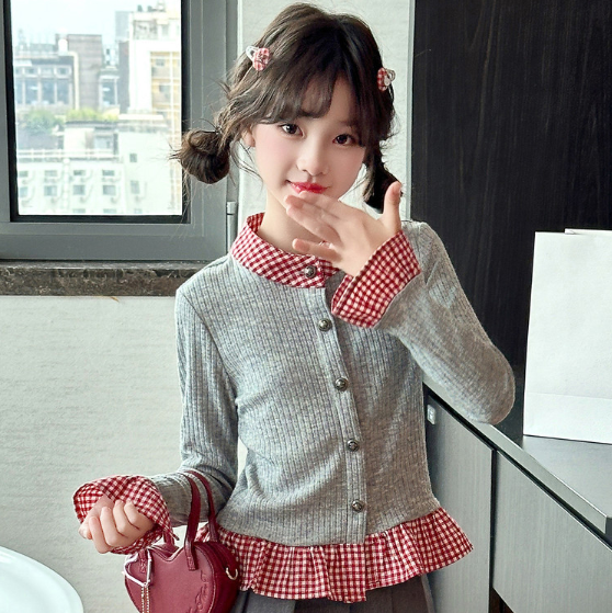 2025秋服新作韓国子供服 チェック柄 トップス