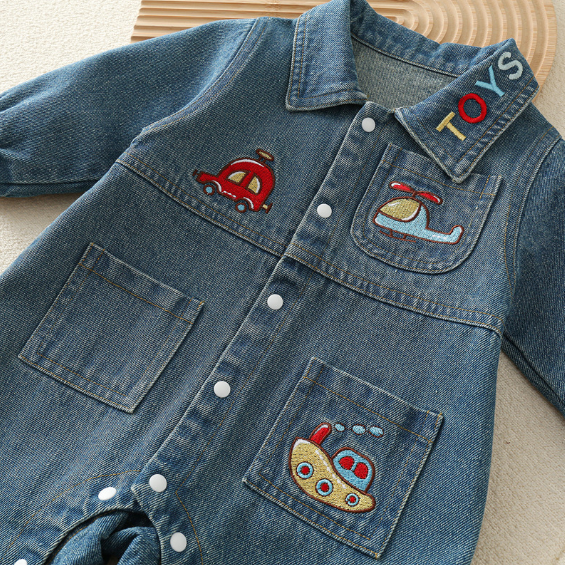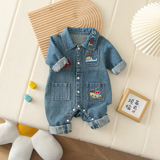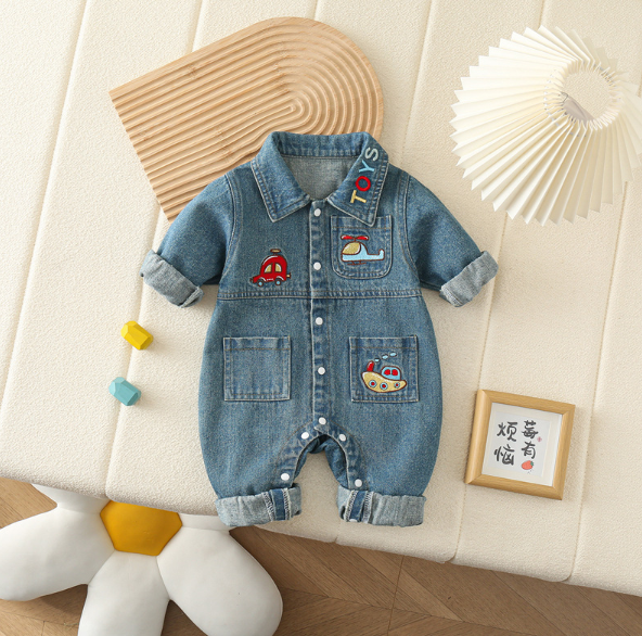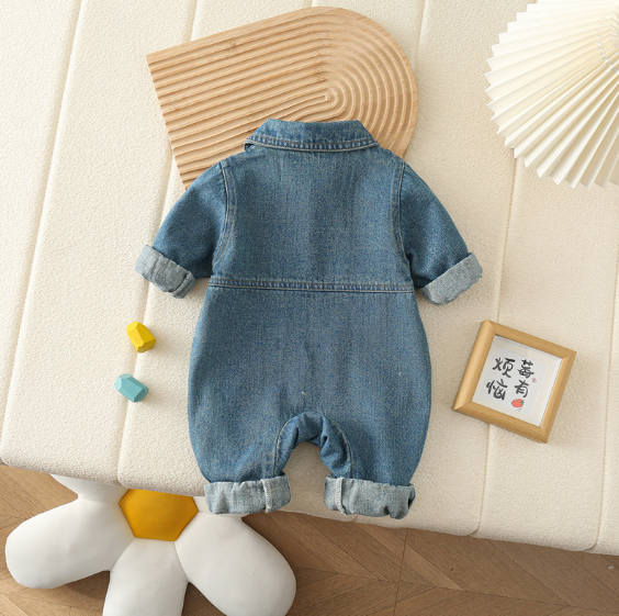 2025秋服新作ベビー服 デニム生地 ロンパース
