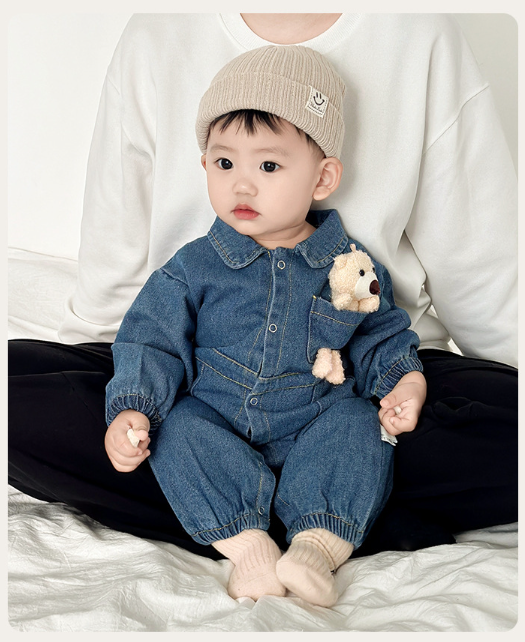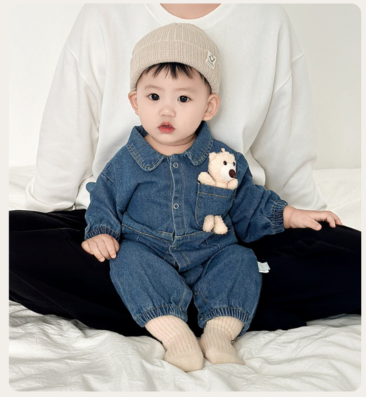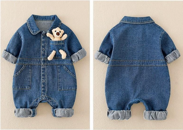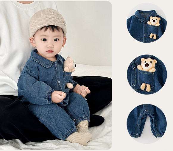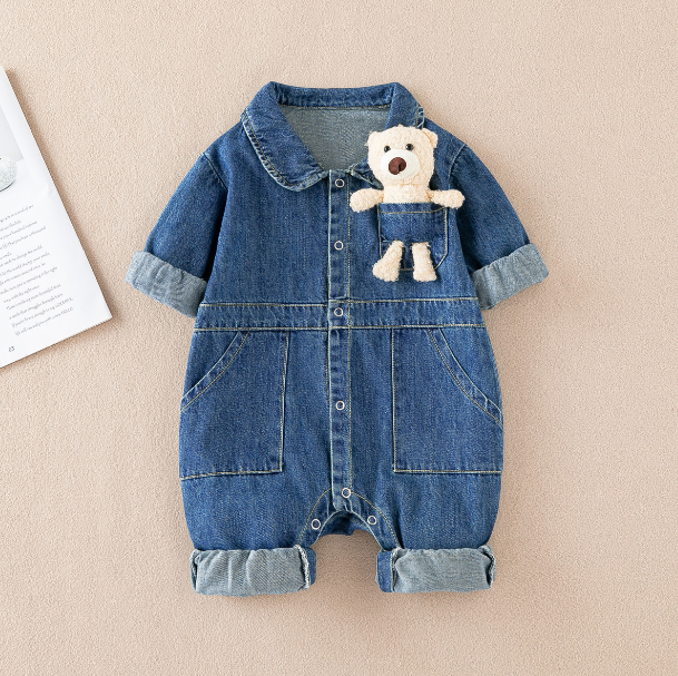 2025秋服新作ベビー服 デニム生地 ロンパース
