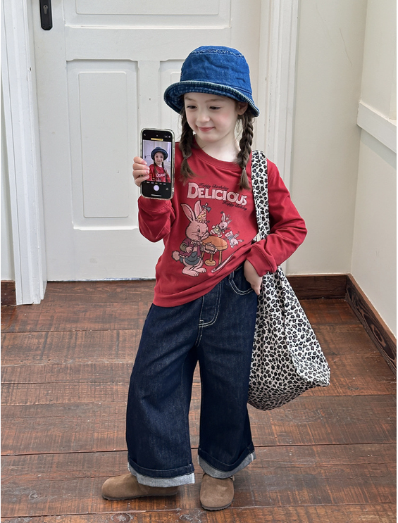 2026春服新作韓国子供服 くまちゃん柄 デニムパンツ