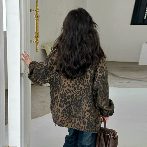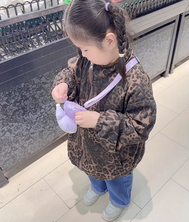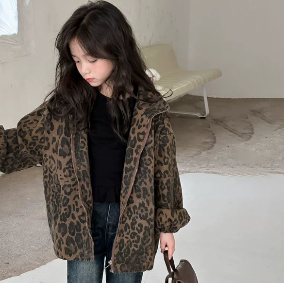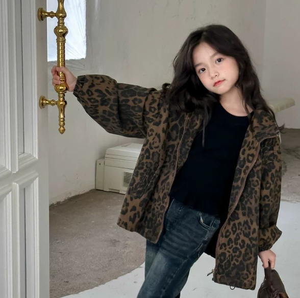2025秋服新作韓国子供服 女の子 豹柄コート