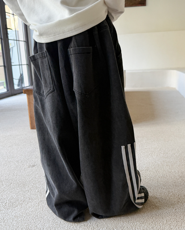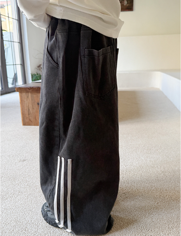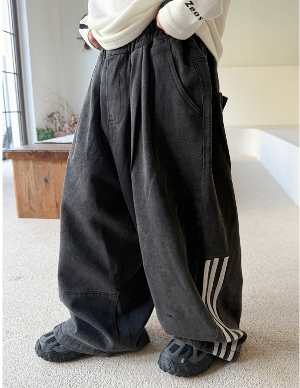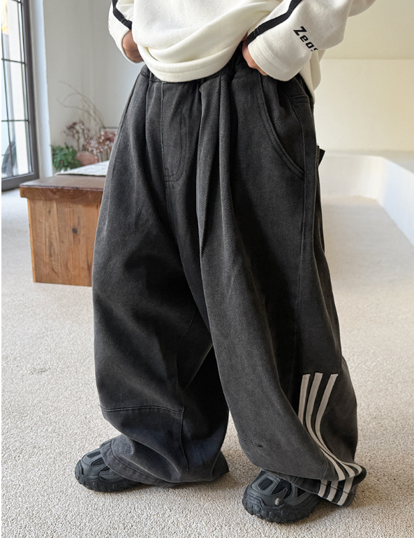2025秋服新作韓国子供服 ボーダー デニムパンツ