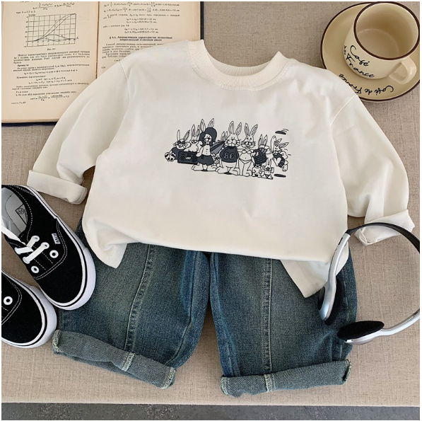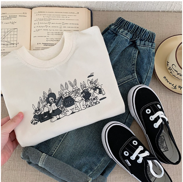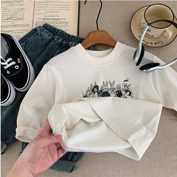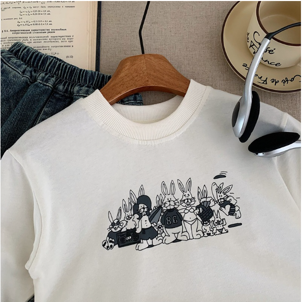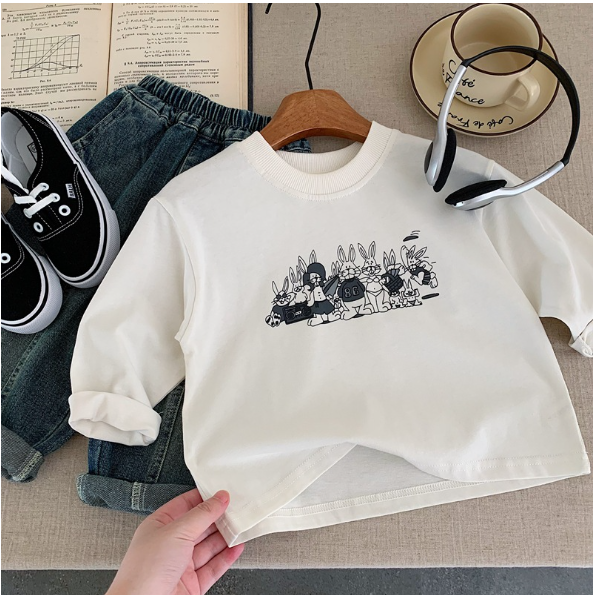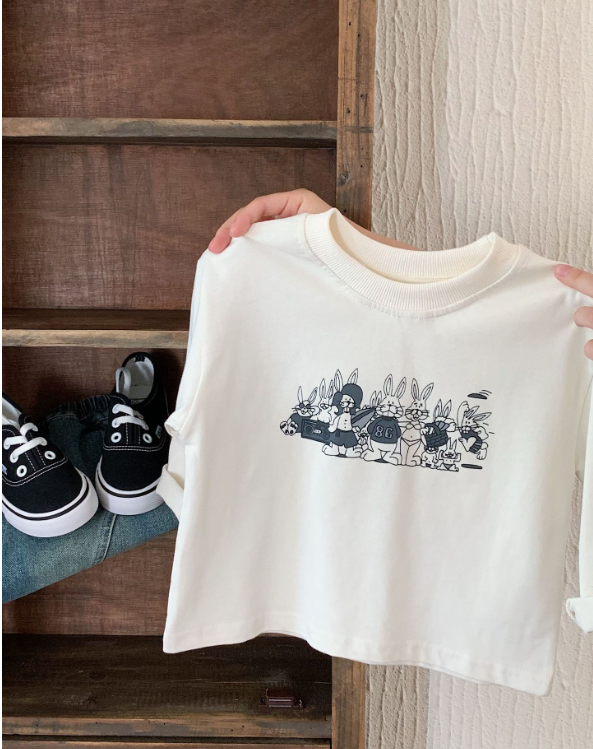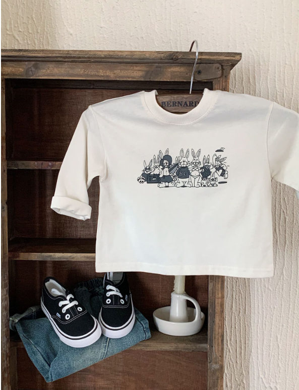 2025秋服新作韓国子供服 うさぎ柄 長袖tシャツ