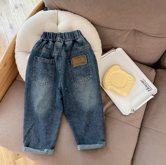 2025秋服新作韓国子供服 Smile柄 デニムパンツ