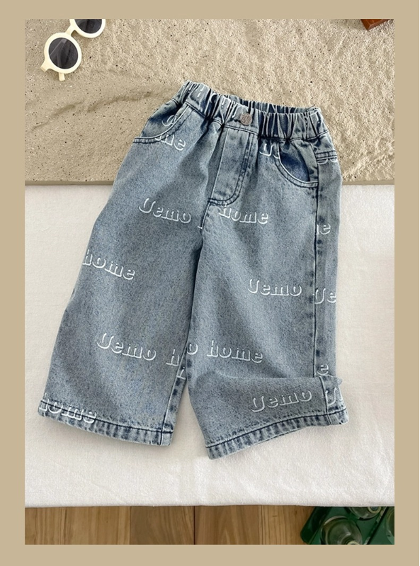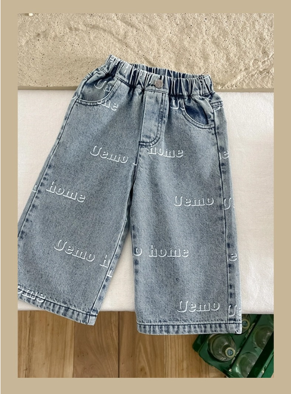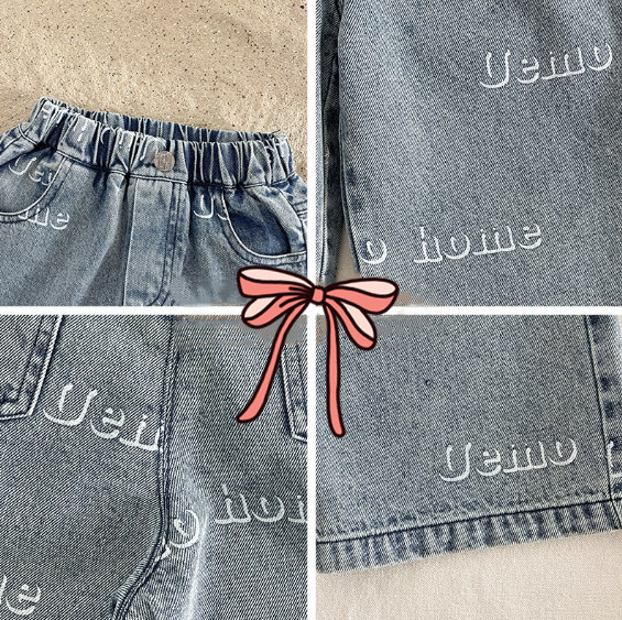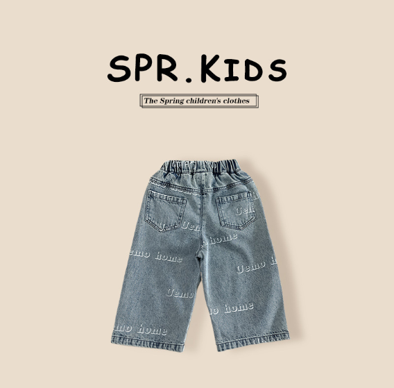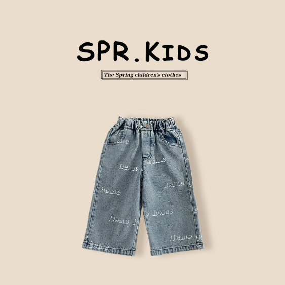 2025秋服新作韓国子供服 英字ロゴ デニムパンツ