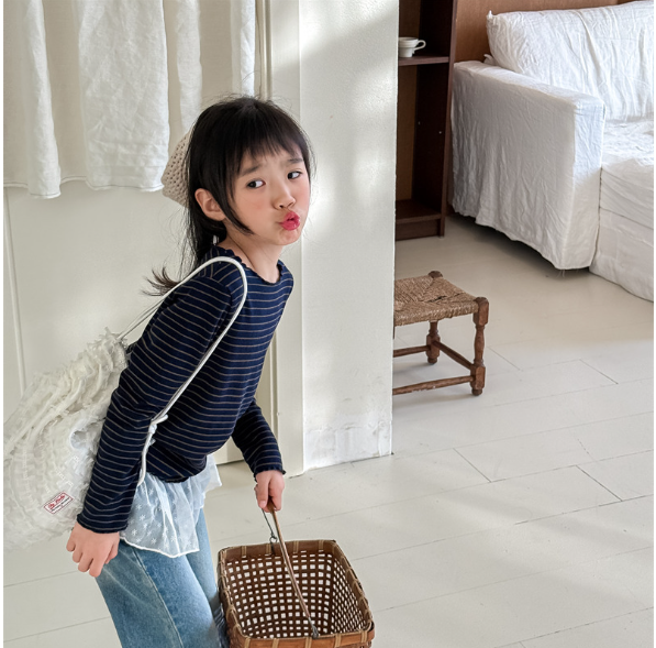 2025秋服新作韓国子供服 ボーダー 長袖tシャツ