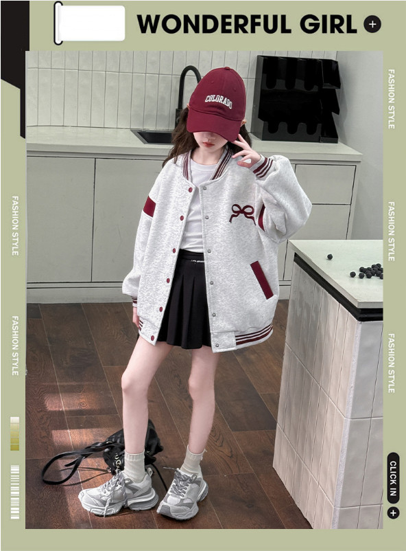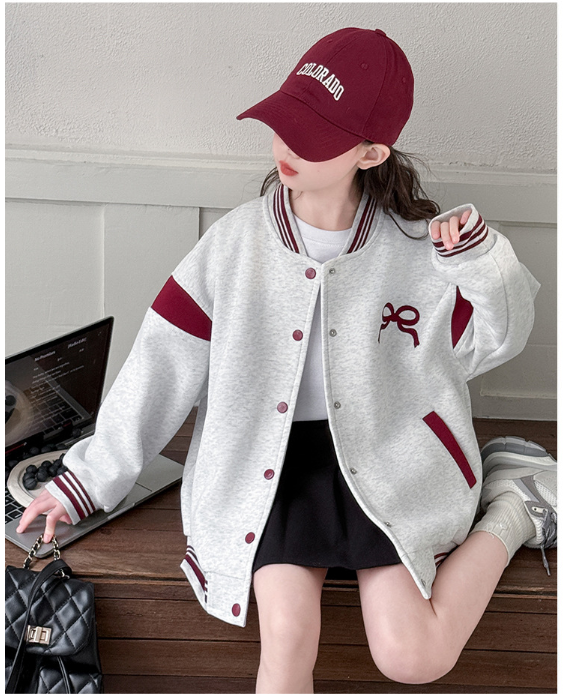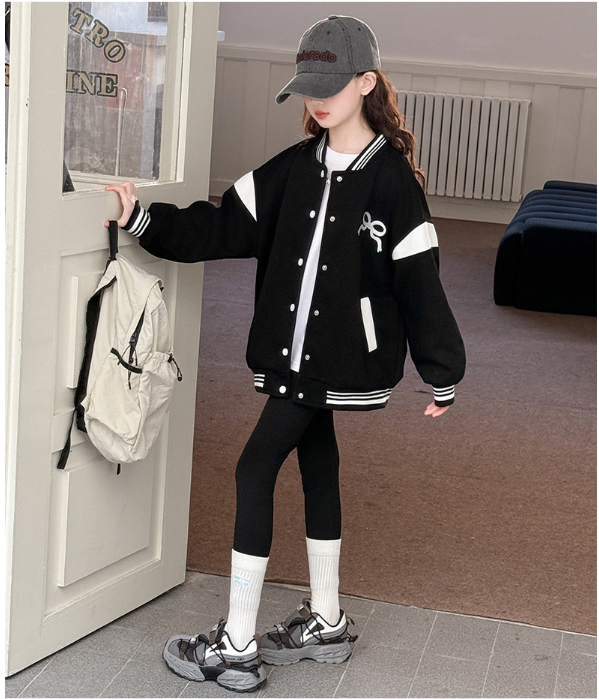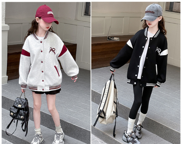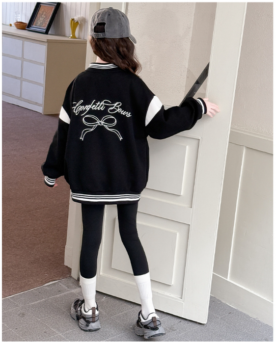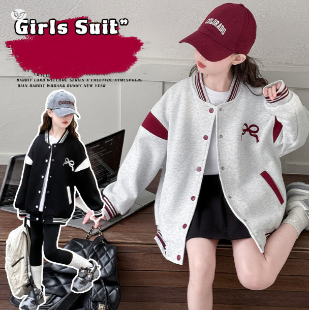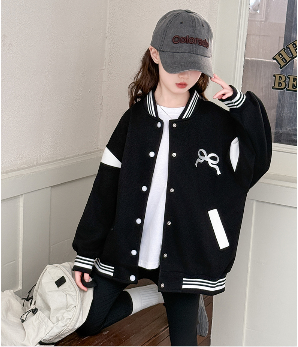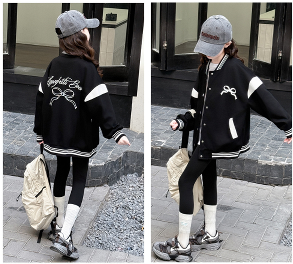 2025秋服新作韓国子供服 リボン柄 刺繍ジャケット